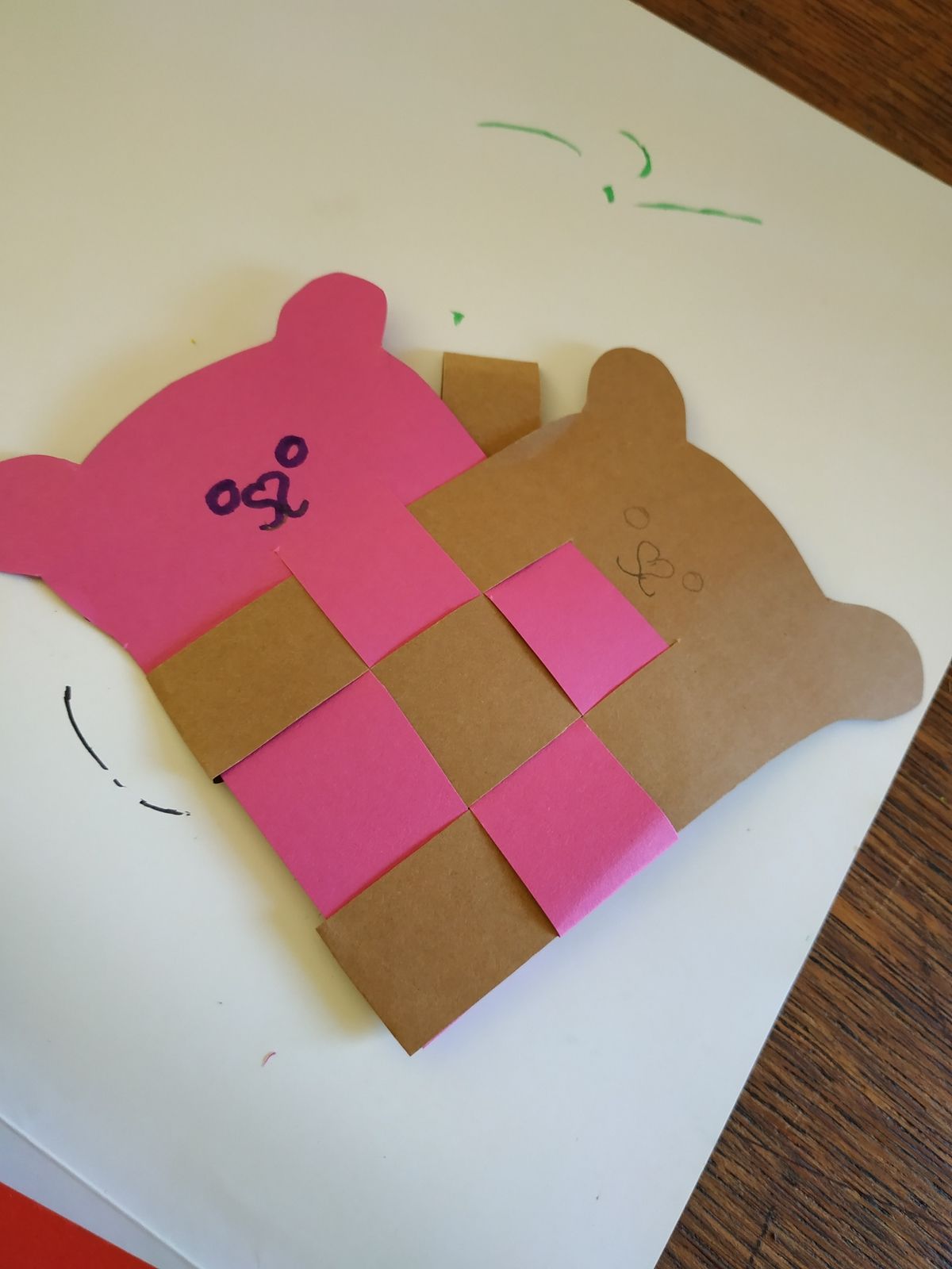 Vous pouvez le décliner diversement en dessinant sur la partie haute une tête de renne, d'ours...on peut varier aussi le motif du tressage en élargissant ou en rétrécissant les bandes à découper